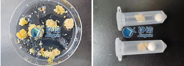 上圖為1分鐘的研磨效果,已經(jīng)完全研磨完成。效果非常好,老師要求愈傷研磨一定要凍液氮,否則rna可能降解,所以人工研磨特別不方便,經(jīng)過多次了解和對比所以老師們選用凈信全自動樣品快速研磨儀代替人工處理。效率高,效果好。解決了老師的研磨問題。