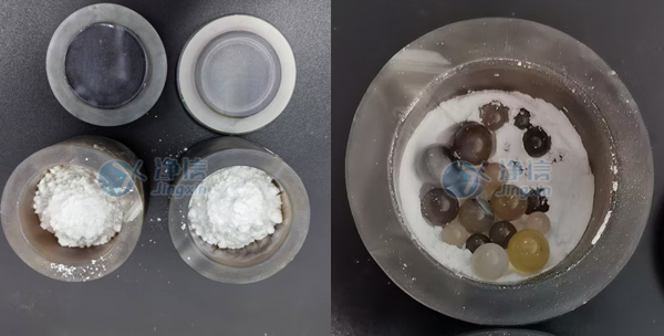 01、準(zhǔn)備工作:行星式球磨儀JX-2G一臺、瑪瑙罐一套,研磨珠若干以及待研磨的氯化鈉樣本