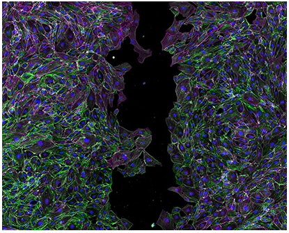 Wound healing and migration assays are done by seeding cells into the Culture-Insert 2 Well. After cell attachment, a cell-free gap is created in which the cell migration can be visualized.