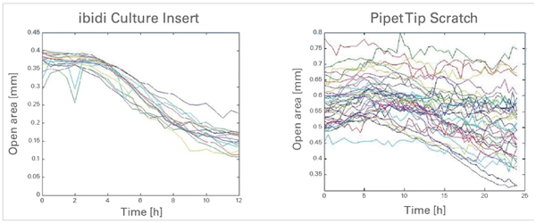 The ibidi Culture-Inserts provide improved reproducibility when compared with a scratch assay