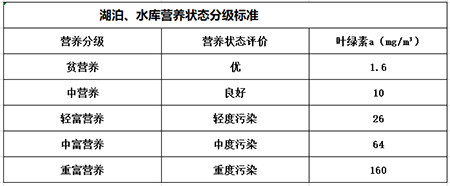 中國環(huán)境科學(xué)研究院李子成在《中國湖庫營養(yǎng)現(xiàn)狀調(diào)查分析》中對(duì)湖泊、水庫的營養(yǎng)狀態(tài)進(jìn)行了分級(jí)。