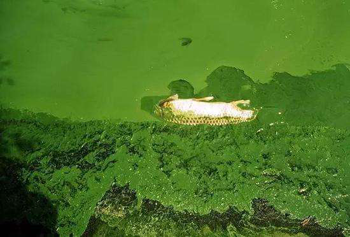 富營(yíng)養(yǎng)化會(huì)影響水體的水質(zhì),會(huì)造成水的透明度降低,使得陽(yáng)光難以穿透水層,從而影響水中植物的光合作用,可能造成溶解氧的過(guò)飽和狀態(tài),造成魚(yú)類大量死亡。同時(shí),因?yàn)樗w富營(yíng)養(yǎng)化,水體表面生長(zhǎng)著以藍(lán)藻、綠藻為優(yōu)勢(shì)種的大量水藻,形成一層“綠色浮渣”,致使底層堆積的有機(jī)物質(zhì)在厭氧條件分解產(chǎn)生的有害氣體和一些浮游生物產(chǎn)生的生物毒素也會(huì)傷害魚(yú)類。因富營(yíng)養(yǎng)化水中含有硝酸鹽和亞硝酸鹽,人畜長(zhǎng)期飲用這些物質(zhì)含量超過(guò)一定標(biāo)準(zhǔn)的水,也會(huì)中毒致病。