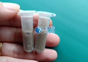 干磨:剪適量頭發(fā)放入2ML離心管中,加入研磨珠若干顆,將裝有樣本的離心管放入研磨孔中,分布均勻擺放,若樣本數(shù)量低于8個,需用空管配比均勻,間隔相同數(shù)量研磨孔擺放樣品管和空管,以保證研磨過程中受力均勻,管子不被打破,離心管擺放后,蓋上機(jī)器蓋子,設(shè)置研磨參數(shù),將檔速調(diào)制4檔,研磨時間設(shè)置為5分鐘,按開始鍵進(jìn)行研磨,干磨效果較好,基本一次就可以研磨成功