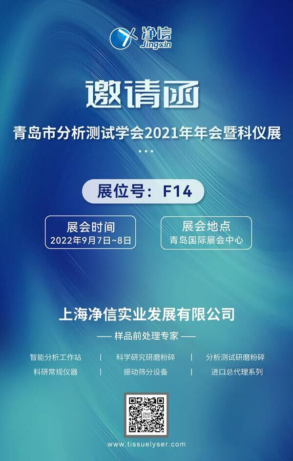 參展詳情:上海凈信很榮幸能夠參加本屆報告會,與全國各地的學者、老師共聚一堂,在分析測試的樣品制備和相關(guān)儀器上進行更深入的交流。在此,上海凈信誠邀您蒞臨F14展位,分享您寶貴的經(jīng)驗,讓上海凈信能夠更好地為科研服務。