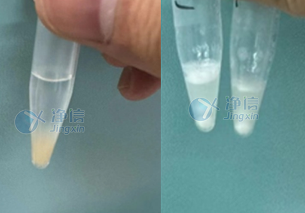 從研磨對比圖中,可清晰的看到蜱蟲被充分研磨,后續(xù)進行離心,離心后分為三層,上層為水相,下層為有機相,中層是我們要提取的蛋白質。