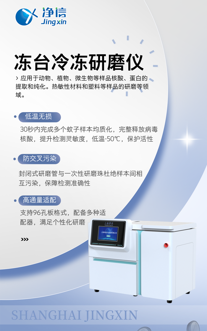 凈信凍臺冷凍研磨儀以標準化、自動化的研磨方案,助力疾控中心構建更快速的蚊媒病毒響應體系。它不僅解放了實驗室人力,更通過提升樣本處理質(zhì)量,為流行病學研判提供可靠技術支撐,默默守護著公共衛(wèi)生安全的第一道防線。