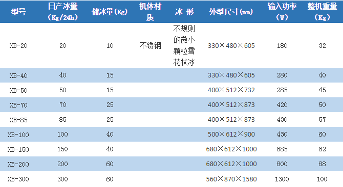 4. 雙螺旋擠壓制冰方式, 所制冰形為不定形顆粒狀冰,能滲入較窄空間,迅速冷卻,冰浴效果好。