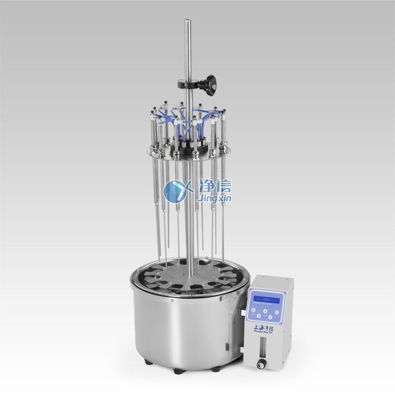 SD-12水浴氮吹儀采用微電腦控制技術(shù)和PID控制方式結(jié)合而成的高精密度控制儀器,其工作原理是將氮?dú)饪焖?、連續(xù)、可控的地吹到加熱樣品表面,根據(jù)被濃縮溶劑的蒸發(fā)速度和沸點(diǎn)、設(shè)定加熱溫度,實(shí)現(xiàn)大量樣品的快速無(wú)氧濃縮。水浴氮吹儀包括底座和支架裝置、樣品架和氣體分配系統(tǒng)。試管通過(guò)帶彈簧的試管夾和支撐盤(pán)來(lái)固定位置。每個(gè)樣品位都有數(shù)字編號(hào);氣體通過(guò)流量計(jì)到達(dá)氣體分配系統(tǒng),靈活的引導(dǎo)管將氣體導(dǎo)入每個(gè)位置的閥和不銹鋼針,將氣體吹至樣品表面,從而使溶劑快速揮發(fā)。根據(jù)試管大小和溶劑多少,各導(dǎo)氣管可獨(dú)立升降至合適的高度。