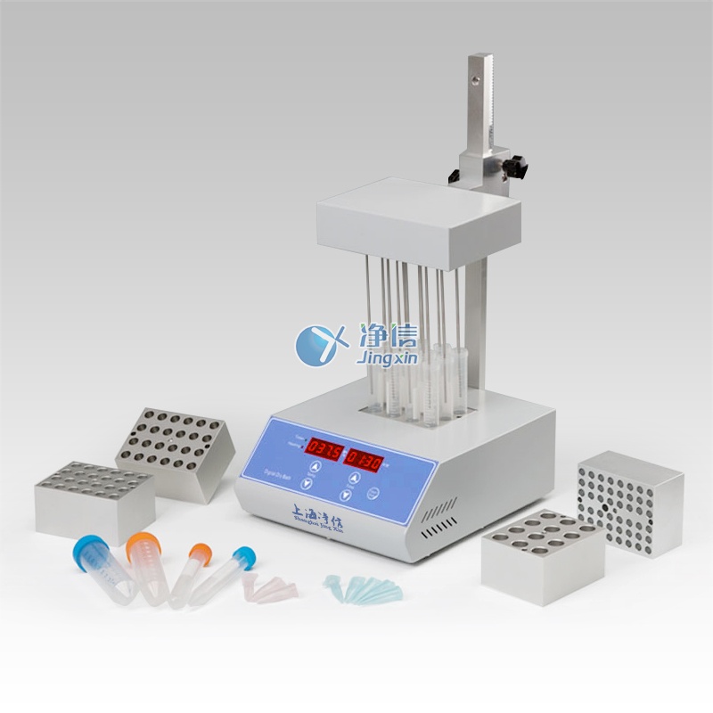 JXDC-10氮?dú)獯祾邇x采用微電腦和PID模糊控制技術(shù),利用高純度鋁材料做為導(dǎo)熱介質(zhì),以代替?zhèn)鹘y(tǒng)的水浴裝置,具有使用方便、控溫范圍大、精度高等特點(diǎn)。其工作原理是將氮?dú)饣蚩諝饪焖?、連續(xù)、可控地吹到加熱樣品表面,并根據(jù)被濃縮溶劑的蒸發(fā)速度和沸點(diǎn),設(shè)定加熱溫度,實(shí)現(xiàn)大量樣品的快速濃縮。
