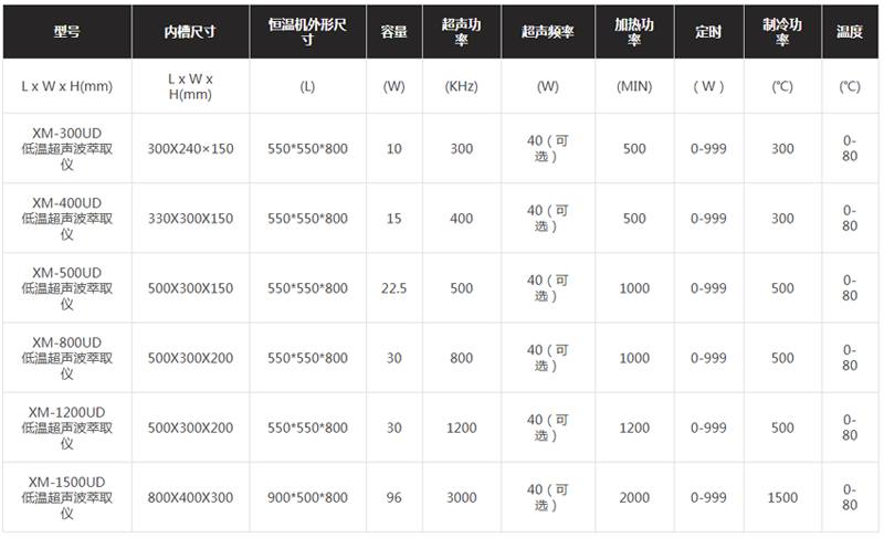 1.精密清洗;2.樣品制備的前處理:液體脫氣、混合、均質(zhì)等;3.中藥材的溶解、顆粒的分散及乳化提?。?.樣品的萃取。液體溫度恒溫控制適合于對(duì)樣品溫度要求精準(zhǔn)的實(shí)驗(yàn)。