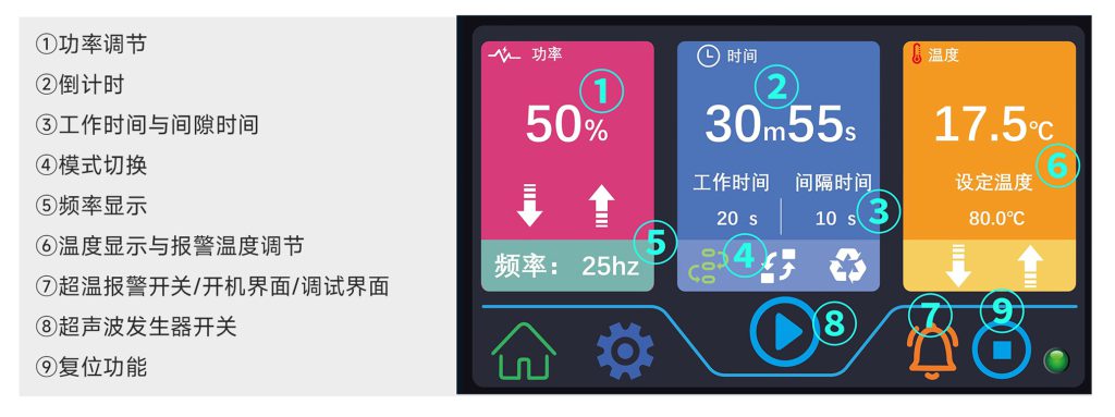 2.新的技術擁有更高的性能:新一代的超聲發(fā)生器采用集成數(shù)字電路,它激式工作方式,具有自動追蹤頻率及自動功率補償功能;經(jīng)用戶反饋超聲運行穩(wěn)定、超聲功率輸出均勻一致,實驗重復性好。實驗證明我們與傳統(tǒng)超聲相比,在連續(xù)超聲、空載超聲、間隙超聲以及超聲探頭使用壽命上具有一定的優(yōu)越性。