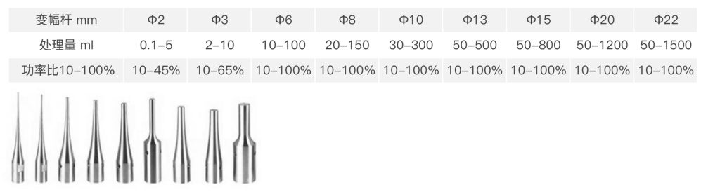 3.超聲探頭采用美標TC4材質的高純鈦合金,探頭形狀:錐形、鞭節(jié)形,發(fā)波形式:垂直超聲
