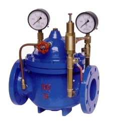 當閥門從進口端給水時,水流過針閥進入主閥控制室,出口壓力通過導管作用到導閥上。當出口壓力高于導閥彈簧設定值時,導閥關閉。控制室停止排水,此時主閥控制室內壓力升高并關閉主閥,出口壓力不再升高。